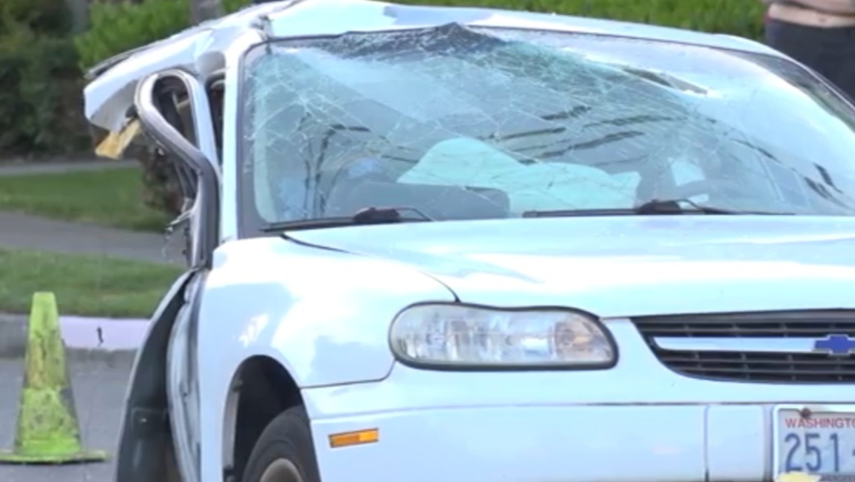 A 64-year-old nurse in Washington State is recovering after a crash that split her car in two.
