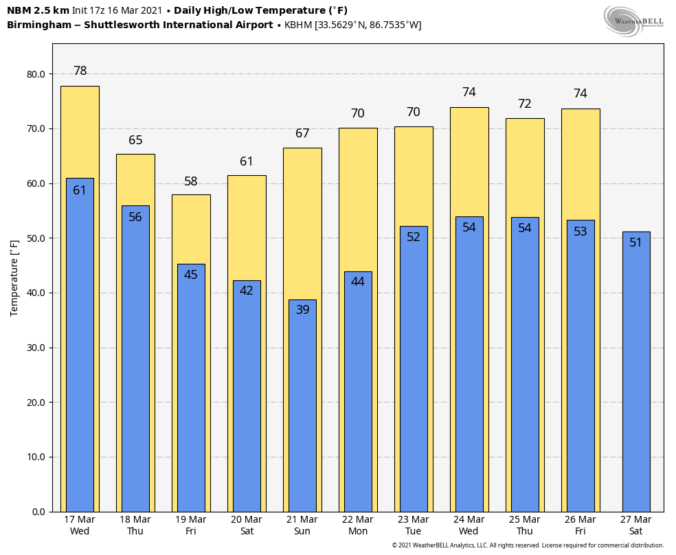 NEXT WEEK: The latest global model set suggests a chance of rain and storms Tuesday, and then again Friday. Both seem to have some potential for strong storms, but it is way too early to determine if severe thunderstorms will be an issue. See the Weather Xtreme video for maps, graphics, and more details.