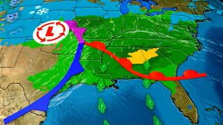 There could be a threat of tornadoes, especially near and south of where a warm front sets up over the South. Damaging winds and large hail will also accompany these storms.