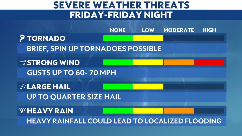 We’ll be tracking a complex round of storms through the day Friday into early Saturday, so let’s break down what you need to know to prepare for our threat for severe weather.
