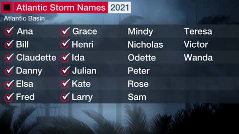 There have been 12 named storms so far this season, five of which became hurricanes. That includes six U.S. landfalls from named storms this season, including Claudette (formed over Louisiana), Danny, Elsa, Fred, Henri and Ida.