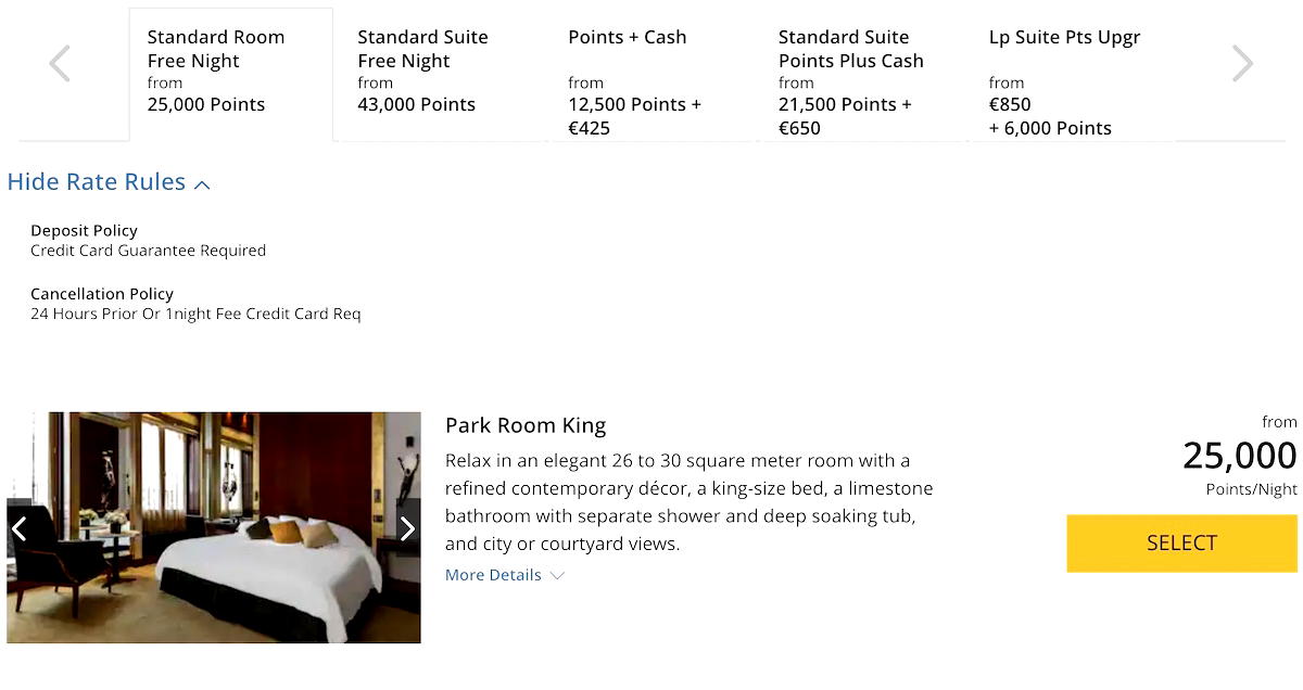 - Standard: Points required during standard redemption periods remain unchanged, starting at 5,000 points per night