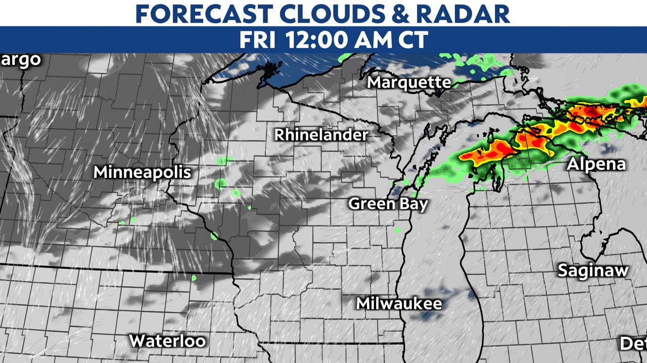 We could continue to see some strong storms in northern Wisconsin through late this evening. Once we get closer to midnight, it looks like the line of storms along the cold front falls apart, giving way to a break for the start of the night.