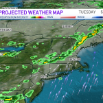 We’ll see a good deal of sunshine today with warm temperatures across much of the region. The only exception will be northern Maine, where we’ll see more in the way of clouds as well as a stray morning and afternoon shower/sprinkle as a system passes well north.