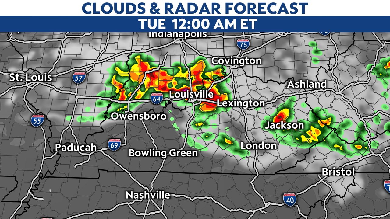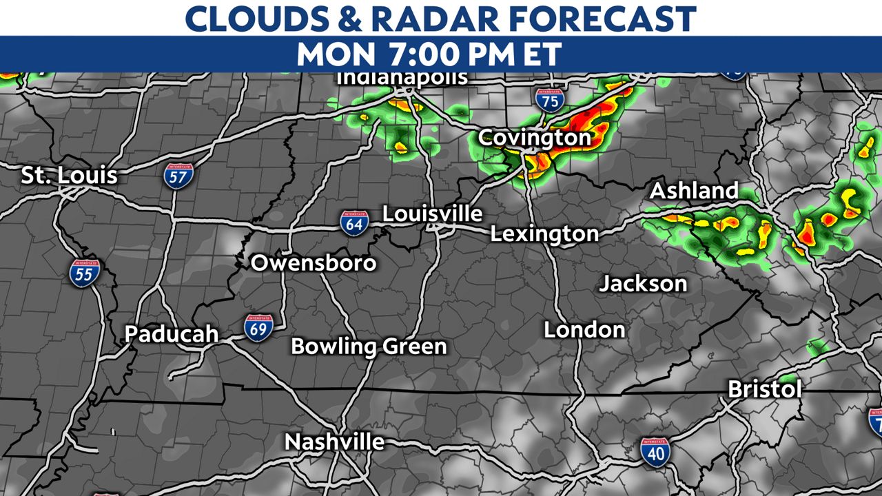 Storms will begin in northern Kentucky first around 6 or 7 p.m. this evening. We could get several rounds of storms dropping in from the north during the overnight hours. Storms will continue to head south by 4 or 5 a.m. Tuesday morning.